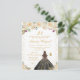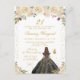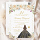 Denna eleganta och glamourösa födelsedagsinbjudan presenterar en vacker prinsessa med brunt hår och ljus hy i en svart balklänning. Texten kombinerar handskriven skrift och moderna sans serif-teckensnitt för en klassisk och sofistikerad look. De blomsterarrangemang, fjärilar och gyllene konfetti skapar den perfekta blandningen av rustik och chic.