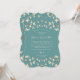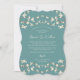 En originalillustration av vackra elfenbensvita körsbärsblommor eller sakura vårliljor med ljust bruna grenar på en turkos turkosgrön bakgrund. Detta är ett modernt bröllop / bröllopsdusch / förlovningsfest / bröllopsdusch / bröllopsmiddag repetition platt inbjudningskort.