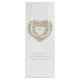 Handritad botanisk tulpanskrans konst bröllop tackfavoritpåse med linjekonst i brun bläck med krämfärgade tulpanblommor och ljust vårgröna blad på vit bakgrund. Vårens tulpaner som omsluter orden Tack, i en hjärtformad bukett och lägg sedan till era egna namn och bröllopsdatum, design på både framsida och baksida med sidopanel i klarrött. Andra färger och matchande föremål finns tillgängliga. © Original bläckteckning och design av Sarah Trett för www.mylittleedenweddings.com på Zazzle.