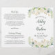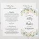 Mjuk kräm och elfenbensfärgade blommor med friskt grönt och guldaccentuer frambringar "Bröllopet mellan" med elegant typsnitt på detta naturligt romantiska bröllopsprogram. Frodiga akvarellblommor bildar en vacker krans runt på en ren vit bakgrund. Innersidorna kan anpassas helt för ert bröllopssällskap, ceremonin och ett personligt tackmeddelande på baksidan. Programmen trycks på papper med textvikt och levereras platt och behöver bara viktas på mitten.