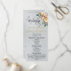 Denna romantiska design har en vacker akvarell krämig blommig bukett, detaljer om vigseln och tack på framsidan med bröllopspartets medlemmar på baksidan. Designad för att samordna med samlingen "Floral & Botanical Wreath". För att ändra detaljer, klicka på «Personalisera». För att flytta texten eller ändra textstorlek, teckensnitt eller färg, klicka på «Klicka för att anpassa ytterligare»