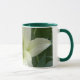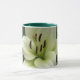 Ringermuggen med krämig liljanärbild för automatiskt linjeskift avbildar.