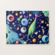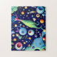 Dö in i en värld av lekfull fantasi med detta pulserande och detaljerade pussel! Den här utformningen har en samling ljusa färger, mystiska, surrealistiska varelser, vismliknande former mot en djup blå bakgrund, och är perfekt för alla som kärlek roligt och som ägnar sig åt pussel med en aning fantasi.