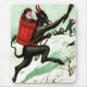 De här dåliga barnen måste sluta springa. Den här Krampus-utskriften visar att Krampus jagar barn i snö. Ett barn har redan fångat i säcken.