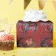 Slå in papper som presenterar Krampus mot en röd bakgrund som bort bär stygga barn för bestraffning.