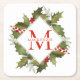Kran för järnek för Monogram för julvattenfärg Underlägg Papper Kvadrat
