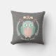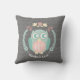 En kudde som presenterar en themed design för skogsmark med en illustration av en bebisugglainsida en kran som dekoreras med löv, blommor och en ekollon. Personifiera namn. Bakgrund är det gråa sparremönster.