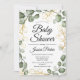 Elegant botanisk inbjudan till babyfest. Klassiskt formspråk med handmålad akvarellgrönska, eukalyptuskrans och skrivstil. Anpassa med dina egna detaljer. Skicka meddelande om du behöver ytterligare anpassning.