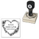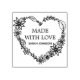 Blommor floral grönska hjärtformad krans med 'made with love' gummistämpel.