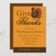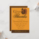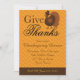 Denna inbjudan till Thanksgiving-middag har en kalkon på en chevron-bakgrund i höstorange och anpassningsbar text.