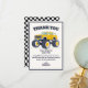 Sätt fart på spänningen med det här djärva och roliga monstertruck födelsedags kort! Med en slående gul monstertruck design, kompletterad med ett klassiskt svart-vit-rutat mönster, är detta kort perfekt för en actionfylld "Smash och Krasch" fest. Helt anpassningsbart med dina fest detaljer, det är ideal för barn som älskar monster trucks och actionfyllda firanden. Imponera på dina gäster och sätt tonen för en oförglömlig händelse!