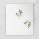 Vattenfärgen bröllop har vikts med grädde och vit ros, guld glitter, guld och grönt löv och andra grönsaker. Mallen är enkel att anpassa om du väljer att ändra texten. Kortets baksida är ett löv mönster i en skugga av grönt som matchar blommorna på framsidan. Om du vill ha en heltäckande skuggning av grönt för bakgrunden tar du bara bort bilden.