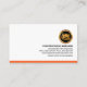 En röd lagrar på översta mörken har en taktopp och verktyg på handymannen som placeras i lodrät ljusröda remsor. Verktyg kan representera en del av den tjänst som du kan erbjuda, t.ex. hammaren för hemreparationer, pensel för målning och slutligen trädgårdströ och gaffel för landskapsvård . Nära kortbasen ljuger företaget namn, dess kontaktuppgifter och en slogan för att sprida dina tjänster. Du kan ändra textkommentarerna till slogan till kostym för dina egna tjänstebehov. På andra sidan, i ett vitt omslag, finns detaljerna på kortets höger med en logotyp i guld hemlandskapet som du kan använda, längst upp. Detta följs av ert prestigefyllda namn, kontaktuppgifterna och ett sloganalternativ. En liknande orange rand kapslar in kortets bas. Detta kort skulle vara underbart för teman som rör konstruktion, byggnad och handyman.