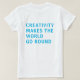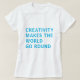 Tshirt for kreativ har texten "kreativitet gör att världen går runt" i ljusblå fetstil. Enbart designad för dig av Lycklig Dolphin Studio. Om du behöver hjälp eller matcha produkter kontaktar du oss genom vår chatta.