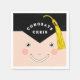 Kreativa examensfest servetter med tecknad examenkandidat i klassisk svart mössa med gul tofs. För att anpassa, redigera texten för att lägga till namnet på din favorit examenkandidat.