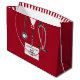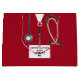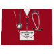 Medicinskola examen, födelsedag eller gratulationsläkarpresentbag med sjukhusstäduniformer och stetoskop. Redigera texten för att lägga till läkarens, läkarassistentens eller sjuksköterskans namn och medicinska kvalifikationer.