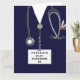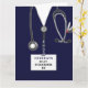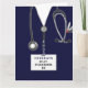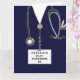 Vårdkort i studenten med marinblått sjukhusskrubbar, stetoskop och knivar från den schweiziska armén. Redigera text för att lägga till sjuksköterskans namn.