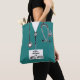 Unik sjuksköterskesväska med sjukhusskrubar, lustig schweizisk armé knivar och ett stetoskop. Redigera text om du vill lägga till autentiseringsuppgifter för namn och sjuksköterskor.