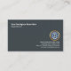 På andra sidan, i ett liknande mörk blått omslag, finns ditt prestigefyllda namn och din befattning i det övre lämnat hörnet. Nära basen ligger logotypen i guld, följt av namn och kontaktuppgifter.