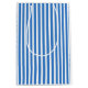Mall för kreativ Trendig Modern Blue White Stripe Medium Storlek Glossy Gift Bag.