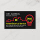 Ett svart hölje har en kreativ inbyggd elektrisk kabelkonstruktion. Över överst på kortet ljuger ditt prestigefyllda namn och din jobbtitel. På basen finns namn "Electrical Service" i gult vid sidan av kontaktuppgifterna. I ett vitt omslag finns det en logotyp som du kan använda för att koppla guld och som du kan använda till högst upp. Detta följs av ditt prestigefyllda namn, kontaktuppgifter och ett sloganalternativ som du kan byta till kostym efter dina egna tjänstebehov. Det här är ett kreativ som är tillverkat för elektriker att använda. #elektriker #Electrical #electricalentreprenader #electricalreparations #Electricaltechnier #light #bulb #plug #zazzlemade