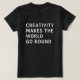 Tshirt for kreativ har texten "kreativitet gör att världen går runt" på baksidan av skjortan i vit typografi på svart bakgrund. Enbart designad för dig av Lycklig Dolphin Studio. Om du behöver hjälp eller matcha produkter kontaktar du oss genom vår chatta.