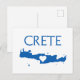 Dela din kärlek till Kreta med detta vykort! Framsidan visar en karta över ön med ett hjärta inuti och är designad med den blå färgen från Kreta flagga.