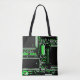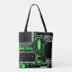 Modern konstruktion som har en nära anslutning till ett datorkretskort i grönt, svart och vitt. Bag med ett anpassade som du kan anpassa med din egen text, bilder och dina idéer. Skapat med hjälp av ett originalfoto och digital teknik av Jess Perry.