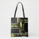 Modern konstruktion som har en nära anslutning till ett datorkretskort i gult, svart och vitt. Bag med ett anpassade som du kan anpassa med din egen text, bilder och dina idéer. Skapat med hjälp av ett originalfoto och digital teknik av Jess Perry.