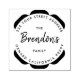 Stiliserad redskapskretsdesign med modern typografi och anpassade-familjens adressetikett för träreturadress.
