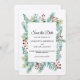 Sätt tonen för din mysiga vinterfirande med detta rustika Spara datum-kort med en kraftpapperbakgrund, akvarell tallgrenar, röda bär och städsegrön lövverk. En charmig design för julbröllop, skogsceremonier eller rustika vinterfiranden. Personifierad med dina namn, datum och bröllopsplats med lätthet.