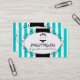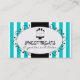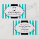 Krickan eller Aquablått- och vitrandar som kombineras med svart söt, virvlar runt, och en teckning av en tårta med en pilbåge på den gör detta en chic visitkort för en design för affär för muffin- eller formgivaretårtabageri av Elke Clarke ©2011. Anpassade med din informations- och bakgrundsfärg.