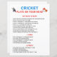 ⭐️ vad det är: "Cricket Plate on Your Head Game" är ett spel i party. Alla spelare behöver en papper skylt och något till skriva med. Håll den pappra plattan ovanpå huvudet med ena handen. Dra med den andra handen enligt anvisningarna.