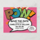 Anpassa med era namn och detaljer för att tillkännage datumet för er speciella händelse. Serietidnings-popkonst-temat modern, rolig retrodesign, perfekt för bröllop, möhippa, baby shower, dop, förlovningsfester, årsdagsfiranden, examen, födelsedagsfirande och andra speciella händelser under hela året! En cool, trendig och rolig design som sätter BAM! ZAP! POW! i din dag. Designad av ComicBookPop© på www.zazzle.com/comicbookpop*