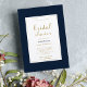 Elegant vintage guld-kalligrafi med enkel ampersand marinblått och guld ram bröllop Inbjudningskort för möhippa. Är perfekt för en förfinad och sofistikerad flicka eller någon annan. Den här designen är perfekt för en händelse i trendig och elegant party. Anpassa den här designen med egen information om meddelande och personlig. Alla designer skrivs ut.