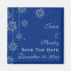 Kristallflingor blå bröllopsinbjudan Spara datumet magnet med tryckta hängande kristallflingor och snö på medelroyalblå bakgrund. En modern och samtida design för ditt vinterbröllop i december eller jul. Denna retro-malldesign är en del av en bröllopssats, är helt anpassningsbar och kan personifieras. Observera att det inte finns några riktiga kristaller eller juveler eller strass, utan de är platta tryckta bilder.