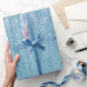 Ett vackert blekblått presentpapper med ett kristallgardinsmönster som skimrar