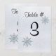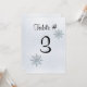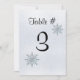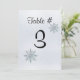 Elegant platt bordskort gjord i en silverfärgad kristallis bakgrund, med vackra silver och ljust teal glitter utseende snöflingor. Svart text, längst upp, står Table #, med ett stort svart nummer nedanför. Anpassa numret för varje bord på ditt bröllopsfirande. Anpassa för att lägga till ytterligare text på dina kort. Texten ändras automatiskt på baksidan av kortet när du anpassar texten på framsidan. Matchande produkter tillgängliga.
