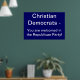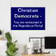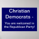 På marinens bakgrund proklamerade brev, "kristdemokrater - ni välkomnas i republikanska Party!" Den demokratiska plattformen Party hade tagit bort "Gud" från sin plattform. Det krävdes tre omröstningar med högt "uppsving" för att äntligen lägga till "Gud" till programmen. Återger det era värderingar och värderingar - och er röst? IowaRepublican