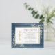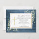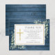 Kristen tackkort för begravning med grönska på en rustik blå träpanel bakgrund. Du kan anpassa med ditt eget tackmeddelande eller dikt. Designad av Thisisnotme