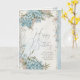 Med en vacker blå blommig religiös födelsedagskort med en skriftcitat på framsidan av kortet och ett vackert anpassningsbart meddelande inuti.