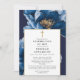 Denna eleganta marinblå och guldfärgade kristna blomsterfirande av liv och minnesinbjudan kan anpassas med din information i klassisk typografi och ett speciellt foto på baksidan. Designad av Thisisnotme©