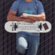 Skateboarden presenterar den heliga bibeln tillsammans med duvan, kor, en passage. Jesus fisk och ett citationstecken. (Hjul kan täcka någon av passagen),