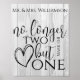 Personligt kristet bröllopspresent elegant modern typografi skriftcitat från Mark 10:8 "inte längre två utan en" med ett hjärta på falskt grått träbakgrund.
