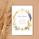Fira den andliga betydelsen av påsk med denna vackert designade religiösa påskbrunch-inbjudan. Med ett traditionellt kristet tema med ett gyllene kors, vita liljor, ljus, vete, oliver och druvor är denna inbjudan perfekt för katolska, ortodoxa eller kristna påskfiranden. Den eleganta och tidlösa designen skapar den perfekta atmosfären för en meningsfull och trosfylld påskmiddag.