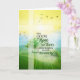 En solig landskapsbild med böljande kullar och en flock fåglar illustreras med ett kristet kors och religiöst budskap för att stödja någon i tillfrisknande.