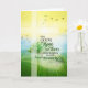 En solbelyst landskap med böljande kullar och en flock fåglar illustreras med ett kristet kors och religiöst budskap för att stödja någon i tillfrisknande.