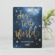 Ett mycket snyggt kristet julkort med gyllene typografi "Joy to the World the Lord has kom!" All text kan redigeras. Med en blå snyggt med stjärnornas bakgrund och små vita stjärnor runt den gyllene texten. En av Luckz ursprungliga religiösans kristna hälsningskort.