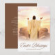 Fira glädjen av det traditionella katolska påskfirandet med detta vackert designade personliga kristna påskkort med påskönskningar. Med en strålande bild av Jesus Kristus som står i gudomligt ljus symboliserar detta kort hoppet och segern över uppståndelsen. Den eleganta "Påskönskningar"-inskriptionen, tillsammans med ett anpassningsbart familjenamn, gör det till en meningsfullt minne. Perfekt för att skicka påskhälsningar till familj, vänner och trosfränder, detta katolska påskkort påminner på ett hjärtligt sätt om att Kristus är uppstånden! Ett genomtänkt sätt att sprida tro, kärlek och uppmuntran under påsksäsongen.