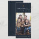 Detta en-foto, vertikala julkort har den traditionella ortodoxt kristna julhälsningen - "Kristus är född! Förhärliga Honom!" mot marinblått med en gyllene stjärna. Anpassa ditt foto och text. Baksidan i marinblått har också ett stjärnklart nattmönster.